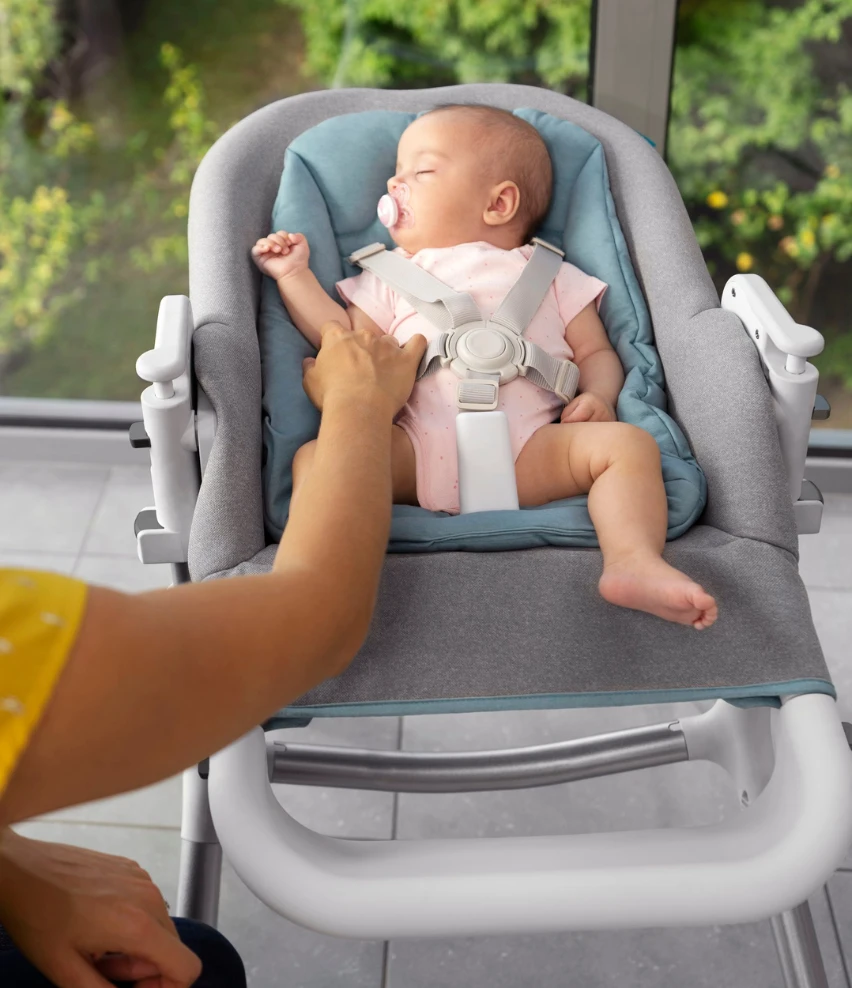 Le dossier de la chaise haute Slick est inclinable en 3 positions et la hauteur de la chaise en 5. Vous pourrez l’utiliser en position assise pour les repas, en position redressée pour les moments d’éveil et en position couchée pour des petits dodos 🙂
