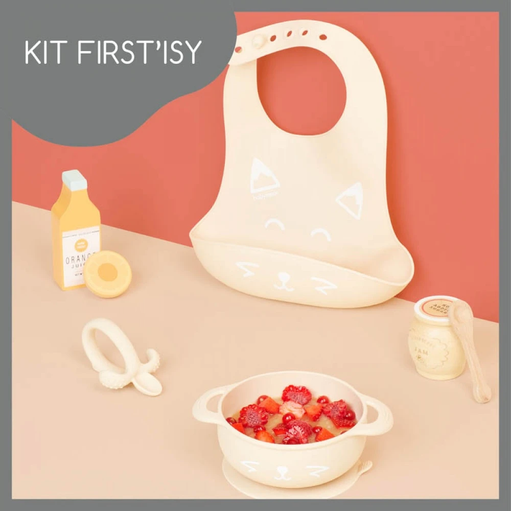 Le Coffret repas en silicone first’isy renard beige de la marque Babymoov est un kit composé de 3 pièces : un bavoir avec récupérateur, un bol et une cuillère. Parfaitement adapté à bébé grâce à ses éléments 100% en silicone légers, solides et durables, ils offrent une prise en main facile et une ergonomie adaptée aux tout-petits.